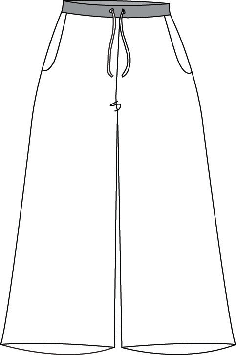 A comfortable ankle-length pant, with a wide drawstring waistband in soft Cotton Knit for comfort and adjustability, 2 convenient side pockets, and wide flowing legs that end at the ankle (or just below), depending on your height.